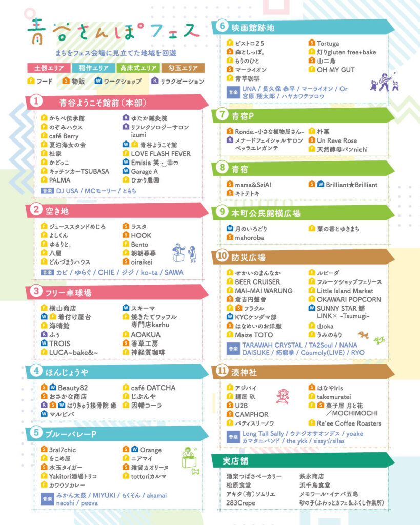かちべ伝承館、ゆたか鍼灸院、のぞみハウス、リフレクソロジーサロンizumi、café Berry、夏泊海女の会、青谷ようこそ館、杜家、LOVE FLASH FEVER、かどっこ、Emisia笑幸、キッチンカーTSUBASA、Garage A、PALMA、ひかり農園、【音楽】DJUSA/MCモーリー/ともち