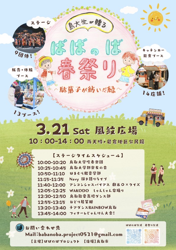 2026年3月21日(土)、鳥取市の風紋広場で「ばばのば春祭り~駄菓子が紡いだ縁~」が開催されます!