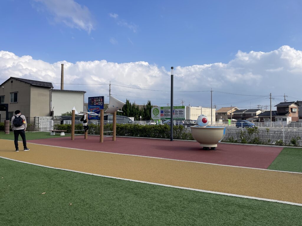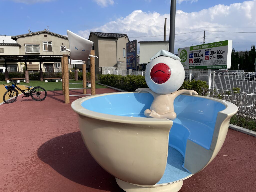 ゆらゆら揺れる目玉おやじのカップや、いったんもめんのうんていなど、ユニークな遊具が並んでいます。