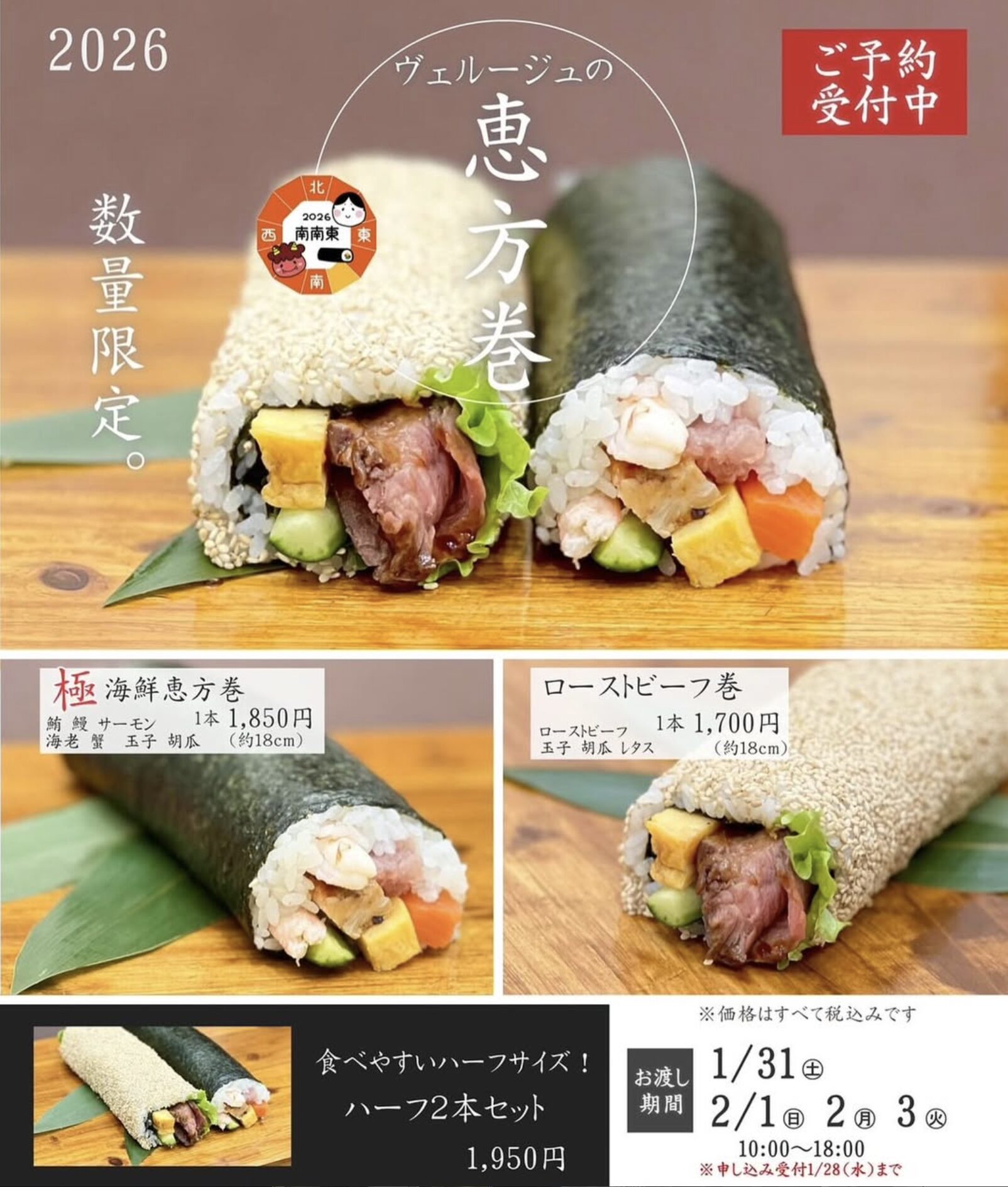 ヴェルージュ専属シェフが作る、特製の恵方巻き。