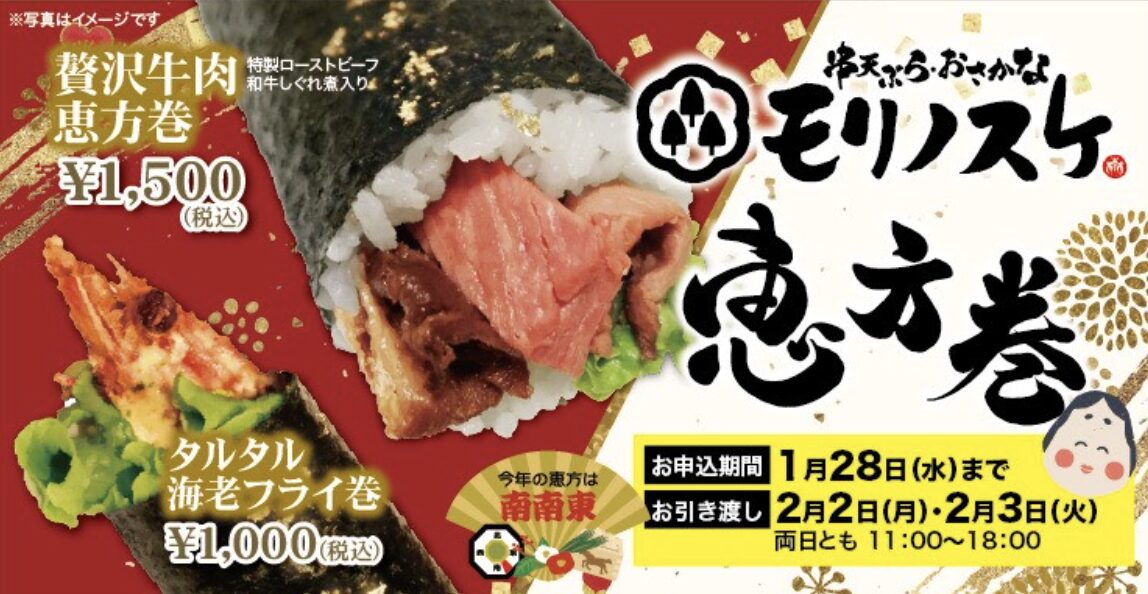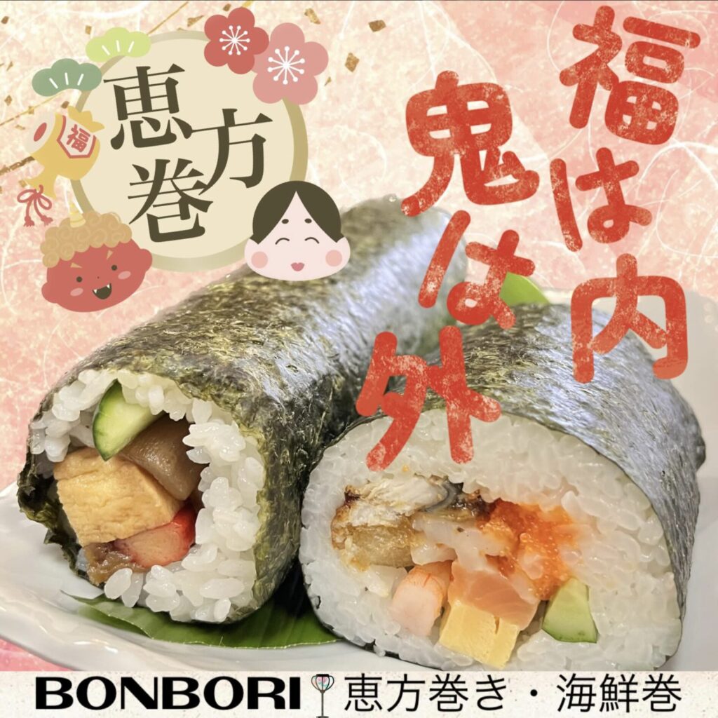 毎年大人気の「海鮮恵方巻」、ボリューム満点肉好きのための「肉恵方巻」、甘党必見の「スイーツ恵方巻」まで登場!