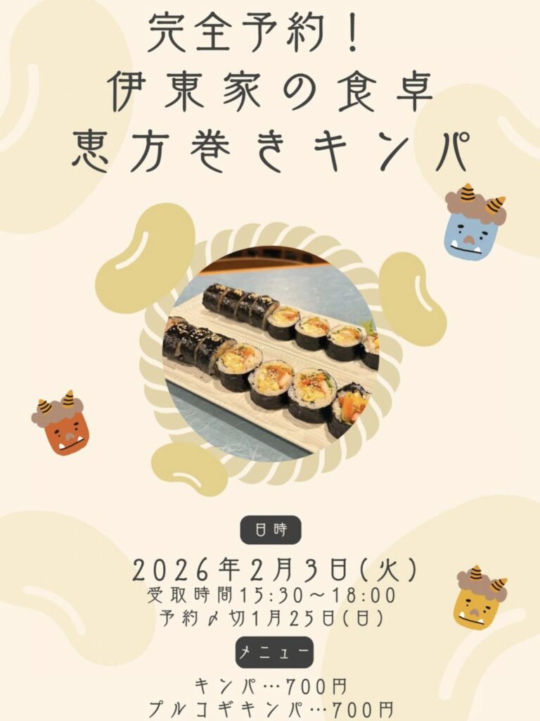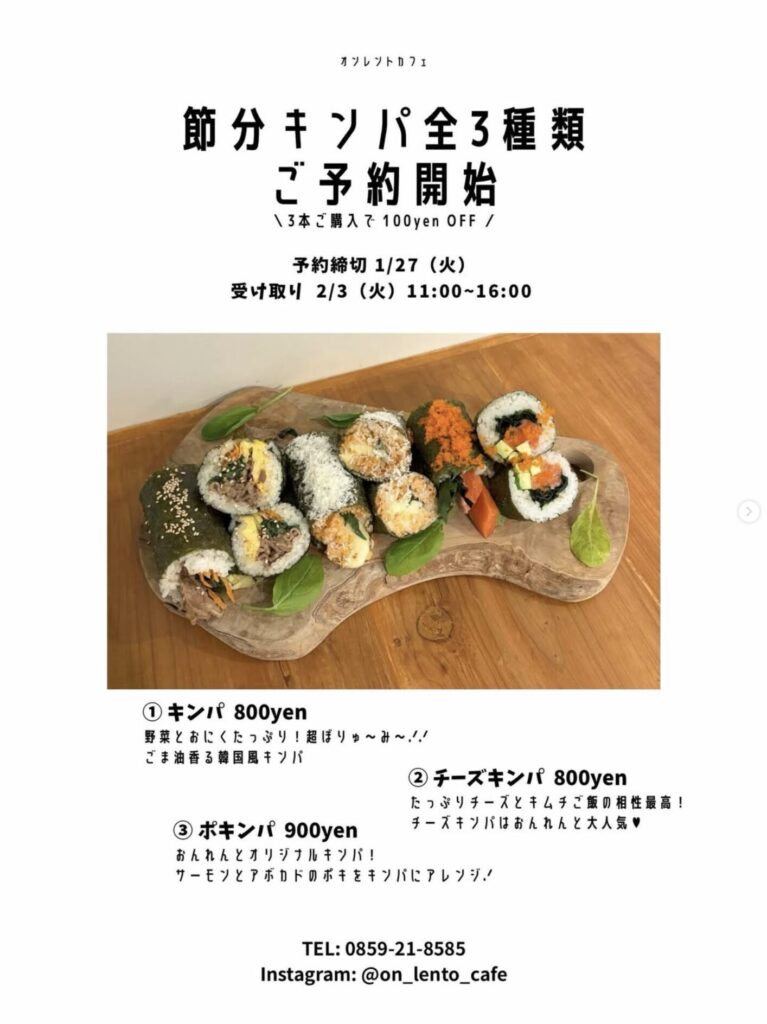 個性あふれるOn Lento Cafeオリジナルの節分キンパは、全3種類。