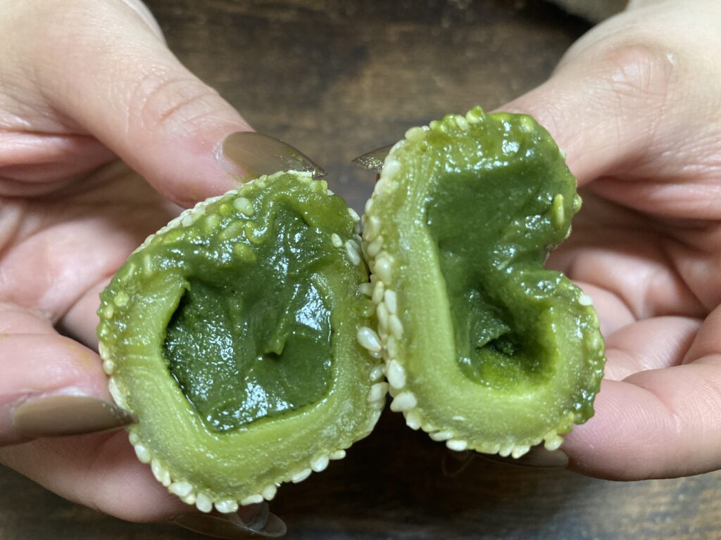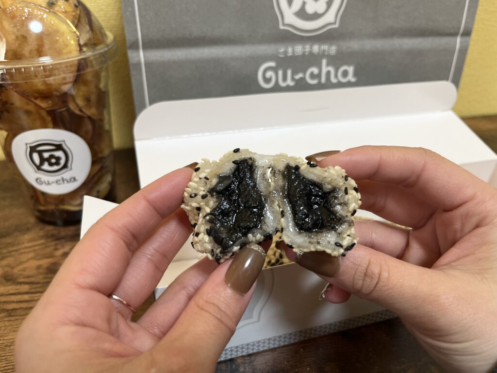 噛んだ瞬間、とろっとした餡が広がり、香ばしいごまの香りが口いっぱいに広がります。