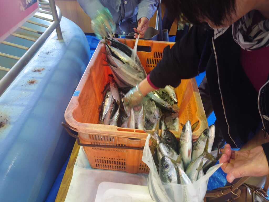 当日は、朝どれピチピチの魚が並び、参加者に袋いっぱいお魚を詰めていただきました。子どもから大人まで夢中になってしまうイベントです。