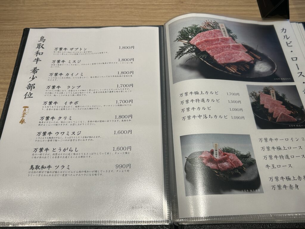 北口店では、A5ランクの万葉牛を中心に据えた多彩なメニューがラインナップされています。