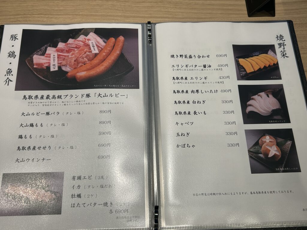 肉以外の食材や酒類にも鳥取県産のものが取り込まれています。