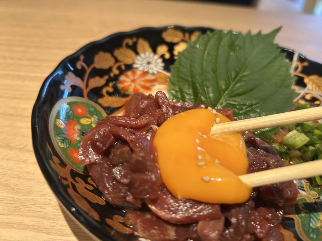 続いて注文したのが、鮮やかな赤身と卵黄のコントラストが美しい桜ユッケ。