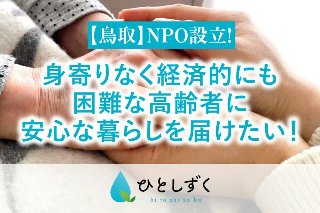 | プロジェクト名 | 【鳥取】NPO設立!身寄りなく経済的にも困難な高齢者に安心な暮らしを届けたい! |