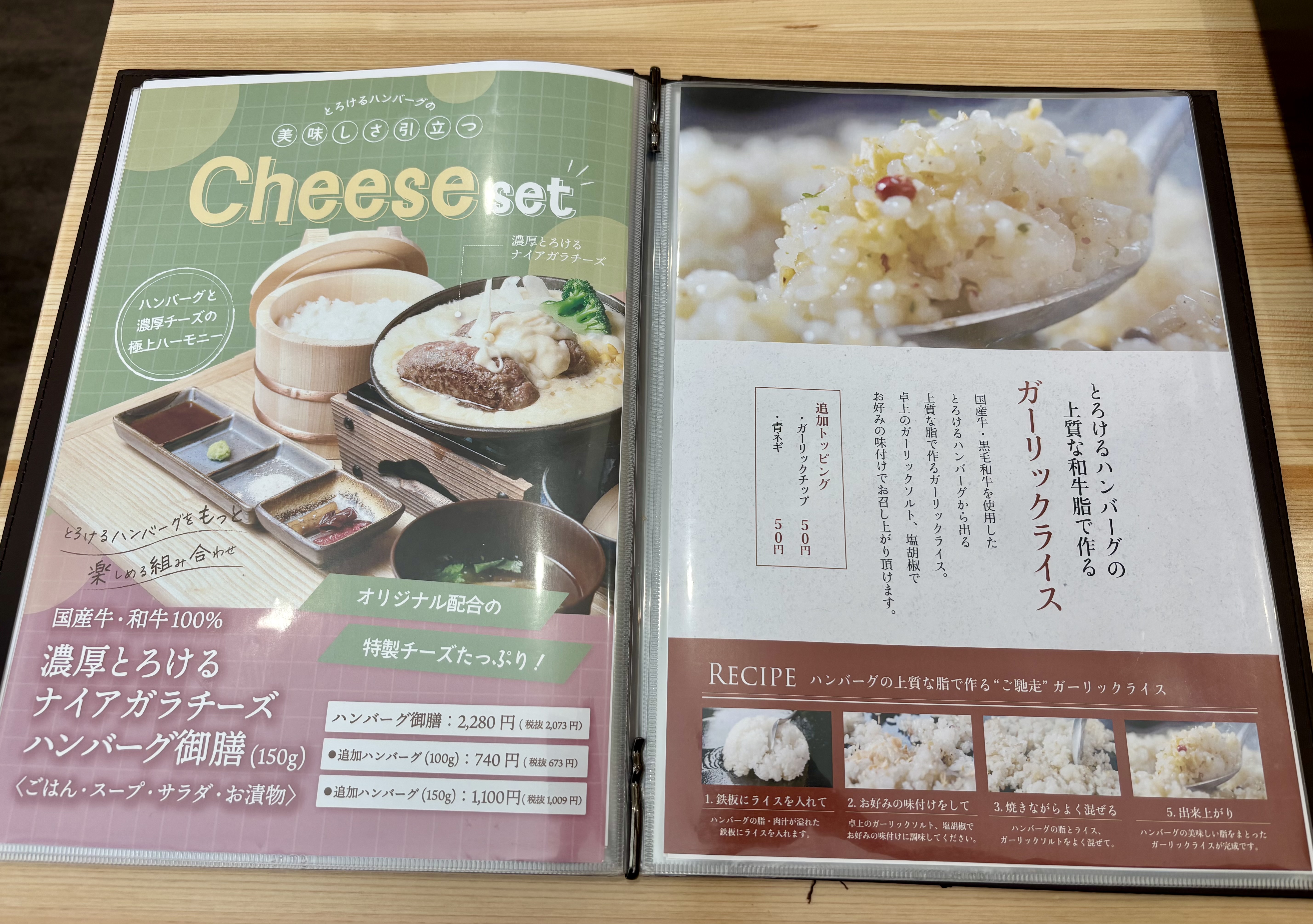 ハンバーグを食べた後の鉄板に残った野菜と肉汁で、ガーリックライスを作って食べられるのも魅力。