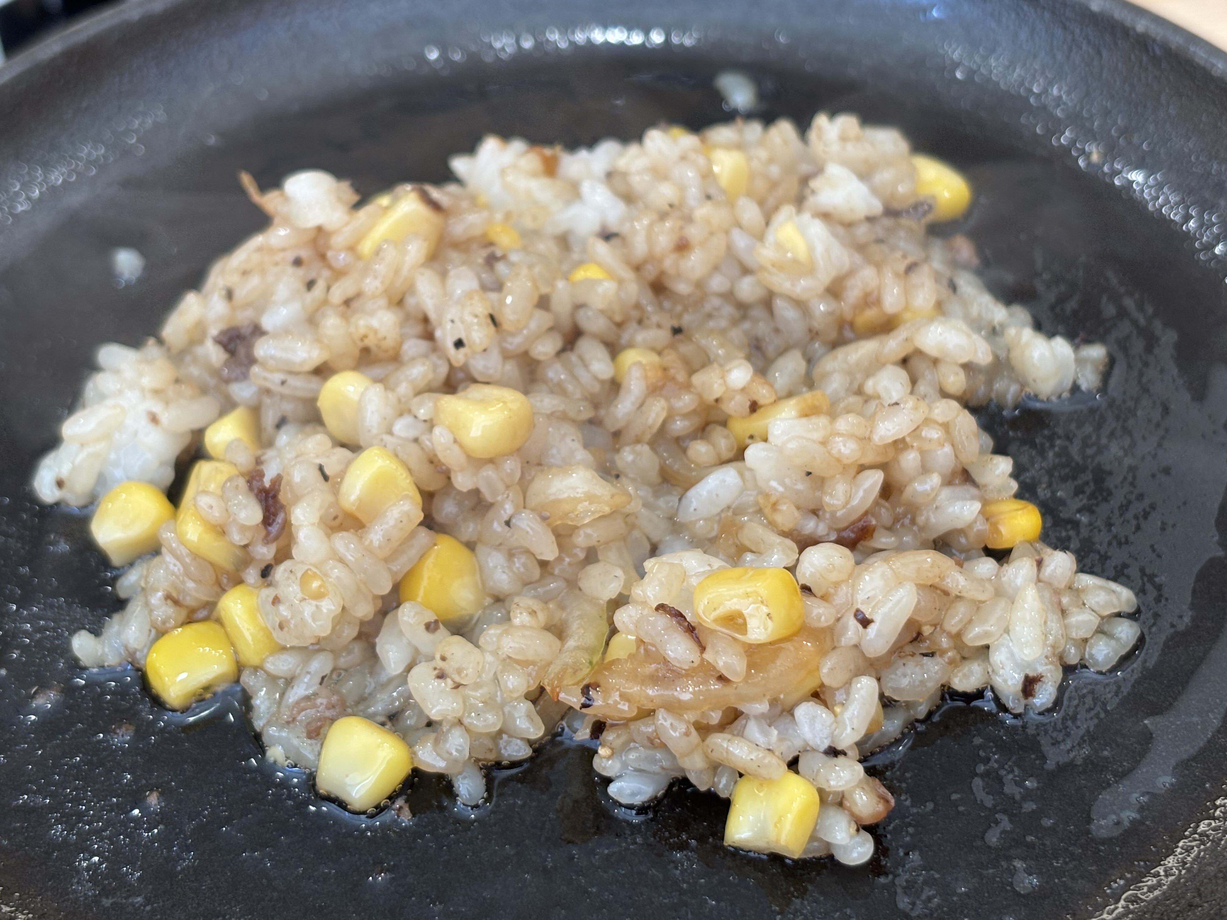 ハンバーグを食べた後は、ご飯と残った野菜でガーリックライスを作って食べます。