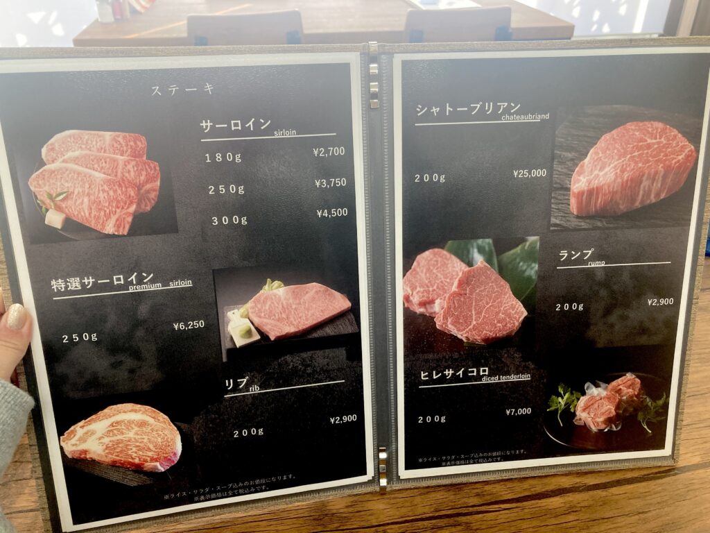 ステーキをはじめ、部位ごとの個性を楽しめるメニューがそろい、伊江牛ならではの旨みと上質な脂の美味しさを存分に堪能できます。