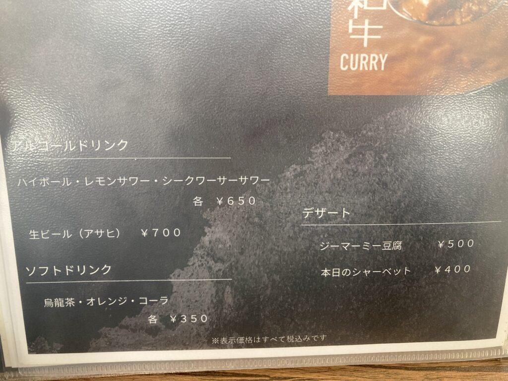 実際にいただいたメニュー