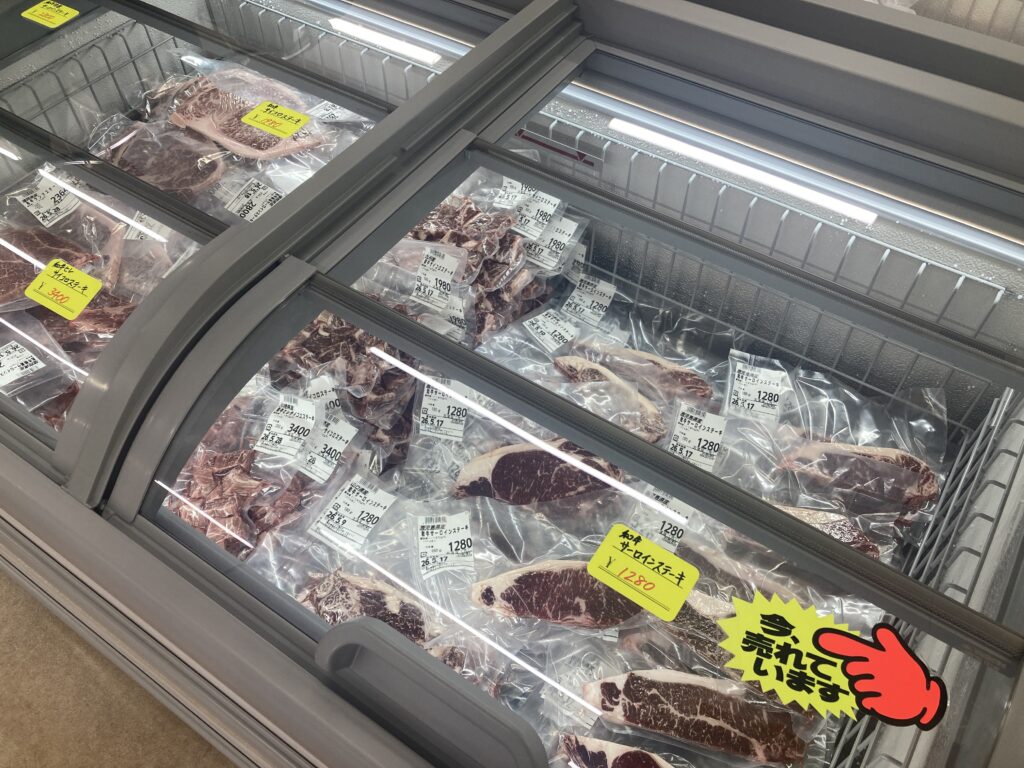 鍋料理やカレー、焼肉、ステーキ用のお肉をはじめ、ハンバーグ、沖縄の特産品などさまざまな商品が並びます。