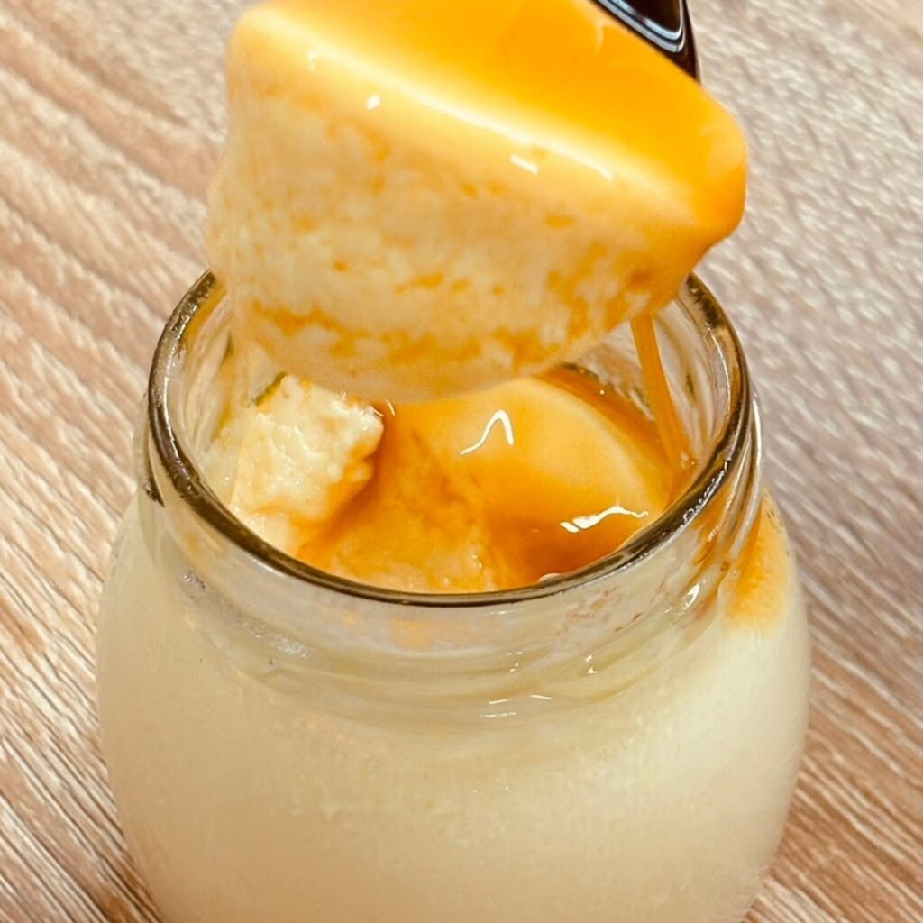 なめらかなプリンとビターソースのバランスが絶妙で、「大人のスイーツ」として男性人気も高い一品です。