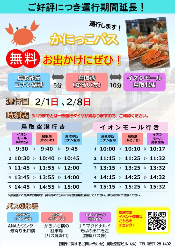 空港↔︎鳥取港(かろいち)↔︎イオンモール鳥取北店で無料のシャトルバスが運行されますので、ぜひご利用ください。