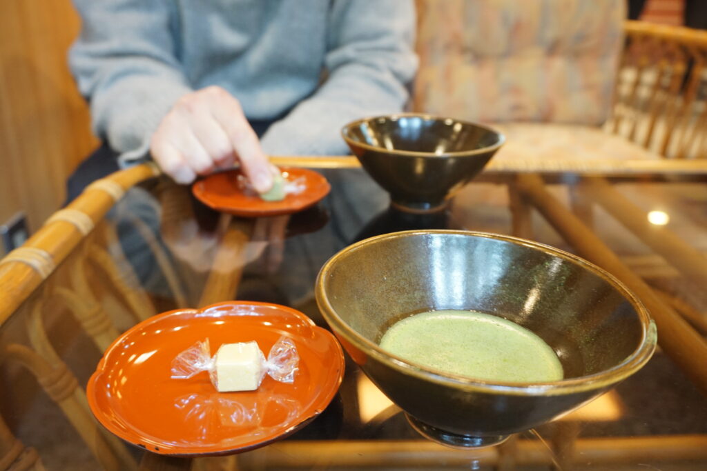 到着すると、心落ち着く抹茶のおもてなしがお迎え。