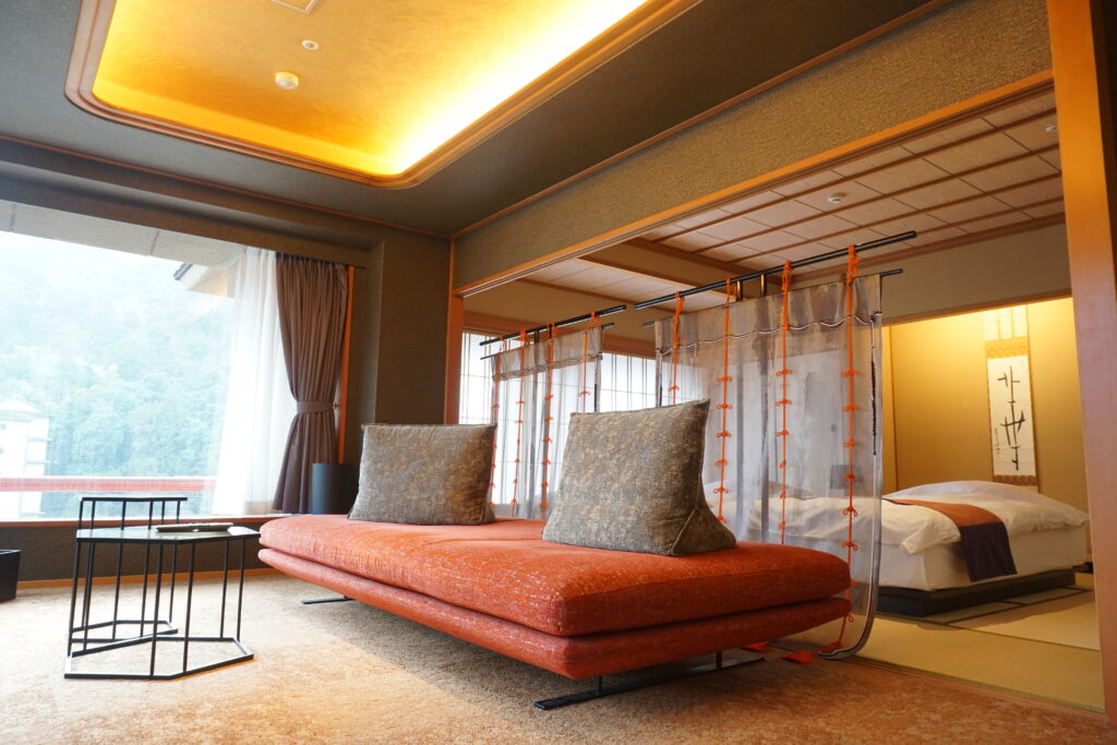 万翆楼は多彩な客室を備え、特に2023年に新設された絶景スイートは注目の一つ。