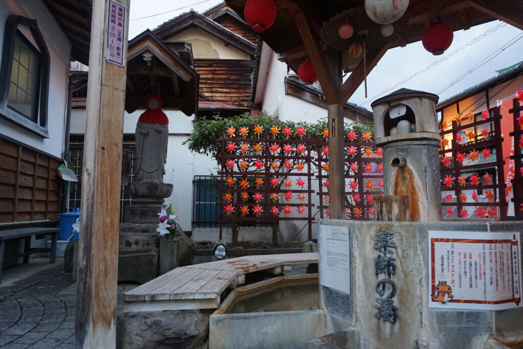 温泉の薬効にあやかり、健康を願って手を合わせる人が後を絶たない場所。