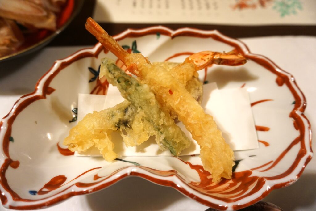 蟹、海老、さつまいも、オクラの天婦羅。