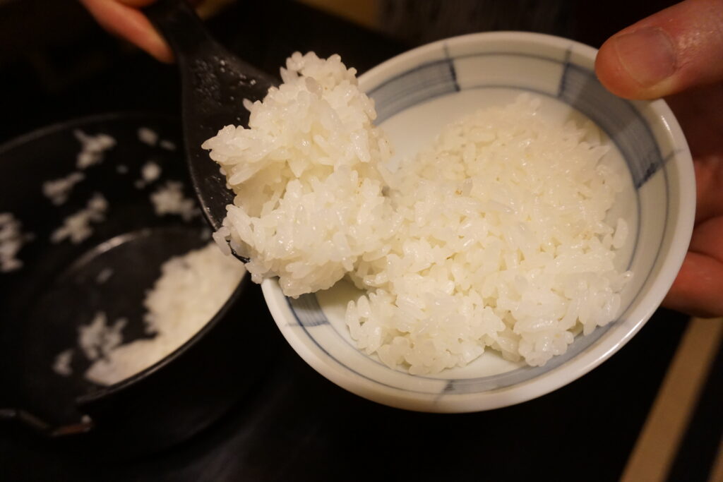 白く艶やかな炊き上がりと、粘りがありながらも重さを感じさせない、あっさりと上品な味わいが魅力。