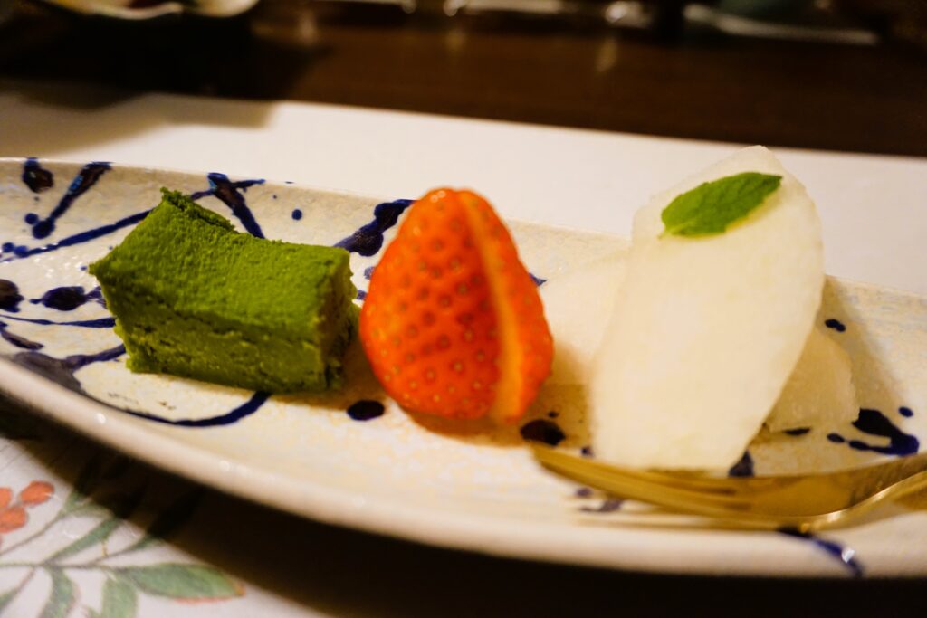 抹茶のテリーヌや鳥取県産いちごとともに、最後まで「冬の鳥取」を味わう構成です。