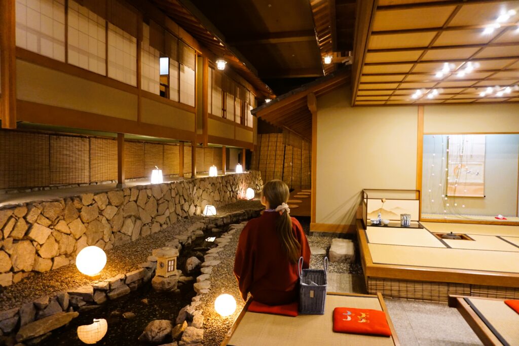 格子や柱、柔らかな光の入り方にまで美意識が行き届き、まるで京の御茶屋に招かれたかのような、凛とした上質さ。