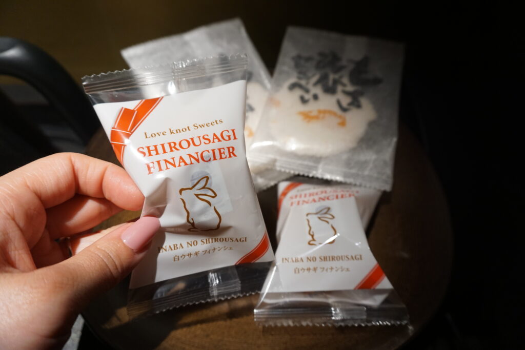 また、しろうさぎフィナンシェやもさえびせんべいといった鳥取ならではの特産品も用意されています。