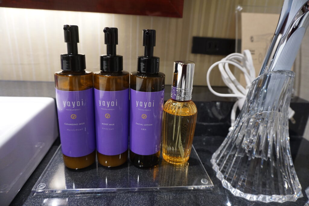 和の世界観を大切にした、日本発のスキンケアブランドyayoiの化粧水・クレンジングミルク・モイストミルクも完備されています。