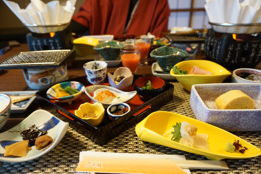 主要な献立には、鳥取和牛、山陰の旬魚、活鮑、大山地鶏、(朝食)などの食材が取り入れられることが多く、地元ならではの旬の味覚を堪能することができます。