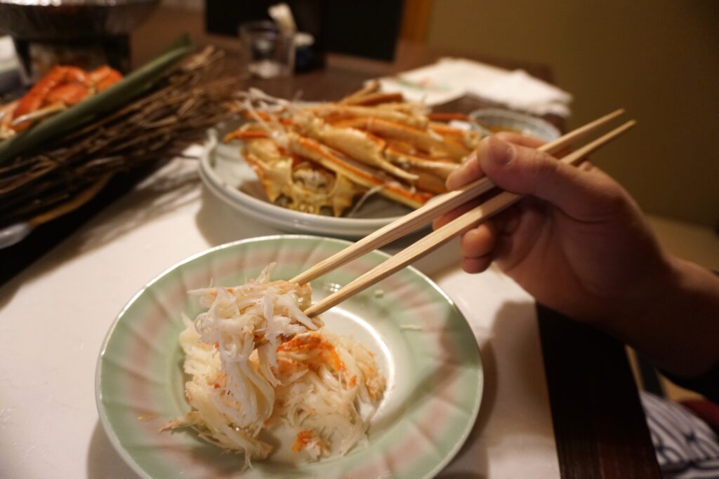 ふっくらと食べ頃になる蟹の身を味わう瞬間は、まさにご馳走の時間。