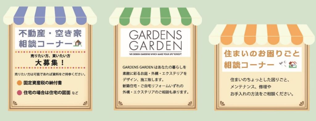 不動産の売買や相続、住宅に関する補助金など、気になっていたことをその場で相談できるコーナーも設けられています。
