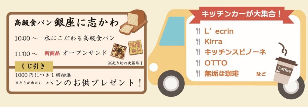 パンやスイーツ、軽食など、イベントの合間に楽しめるグルメも充実。