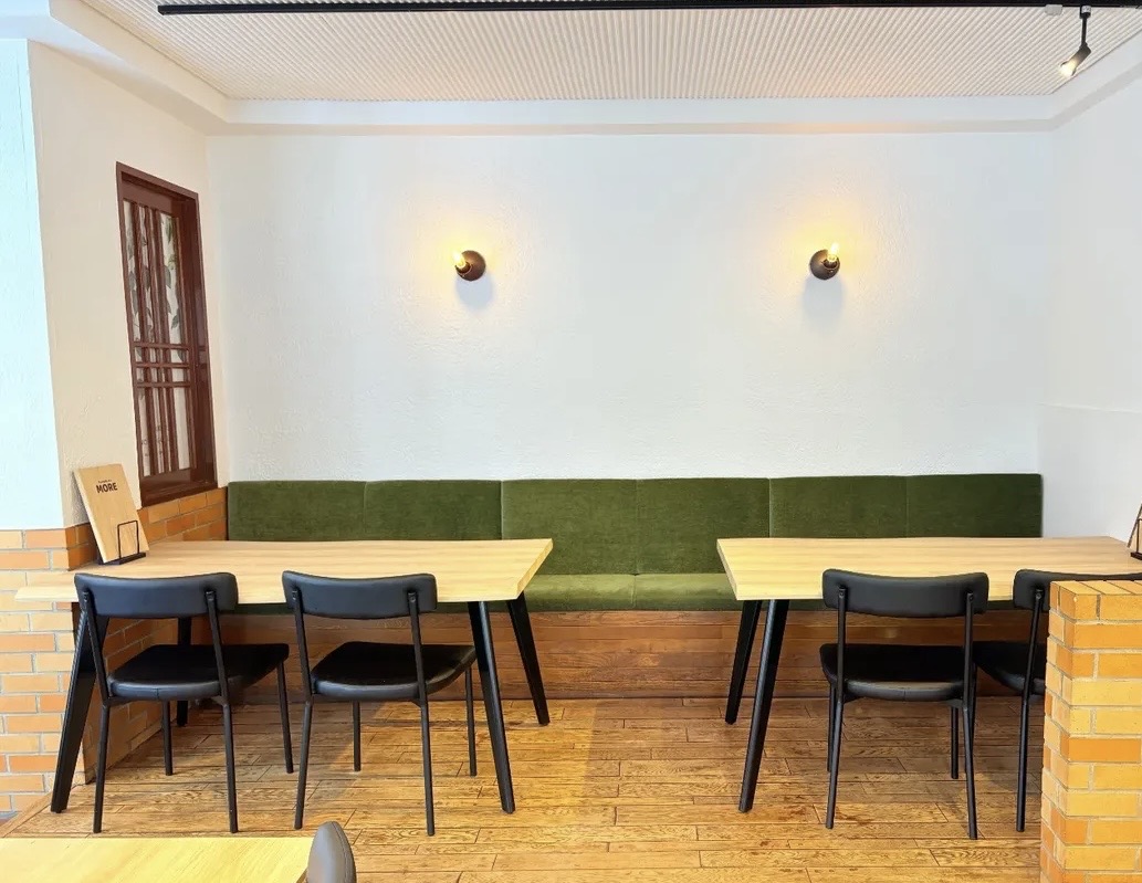 開放感ある明るい店内には、テーブル席が並んでいます。