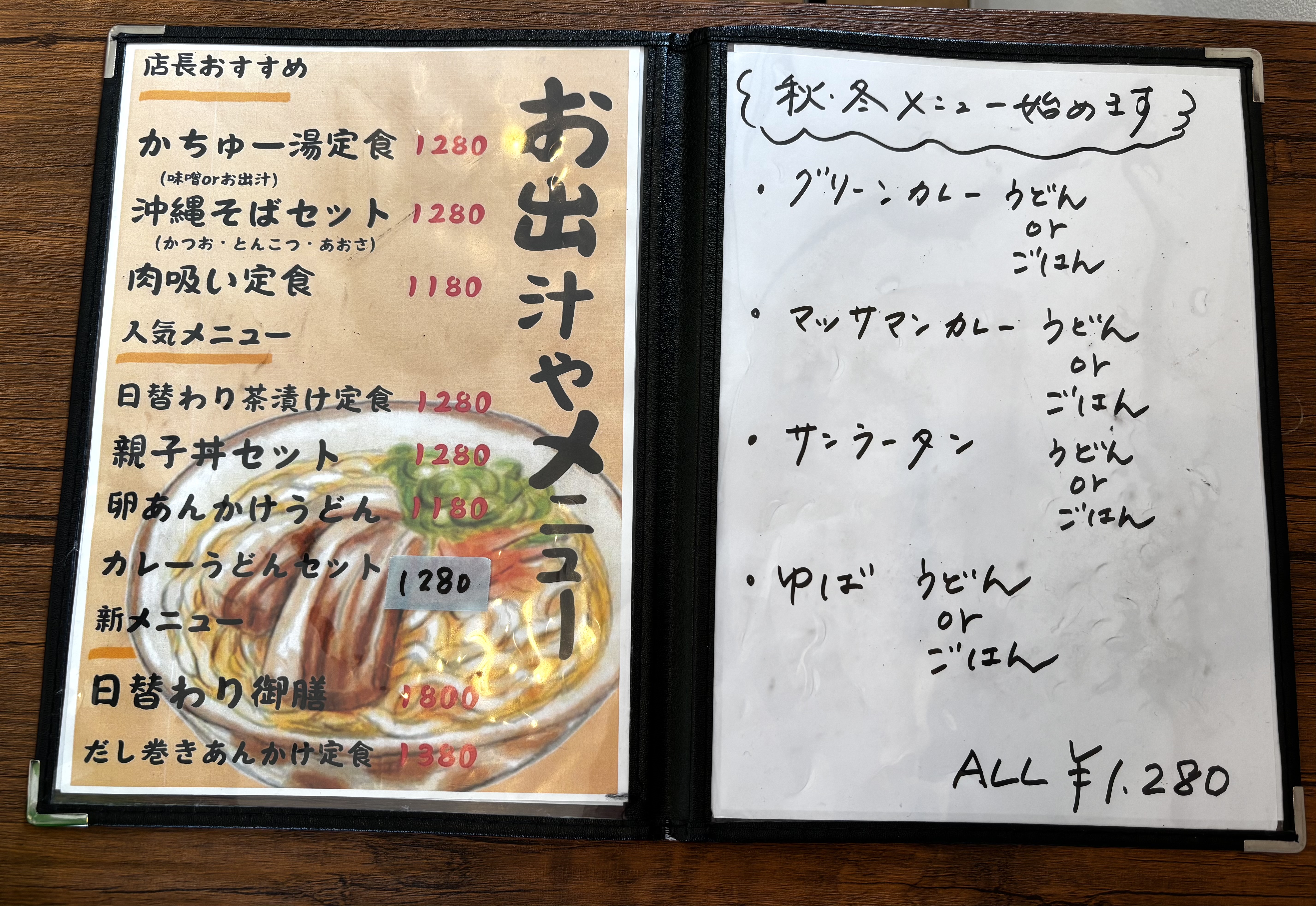 お出汁をきかせたメニューがずらりと並んでいます。