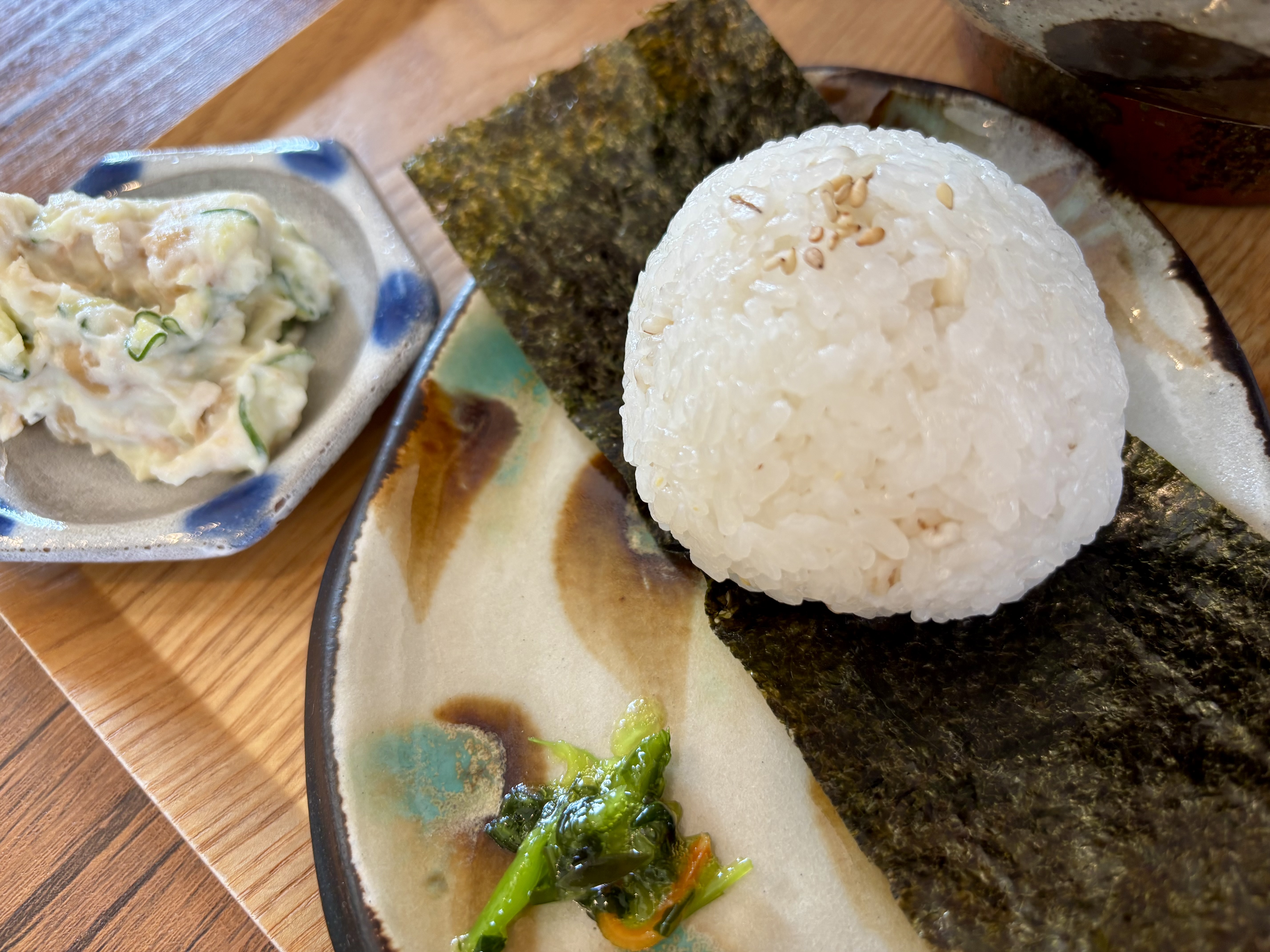 ころん手のひらサイズのおにぎりが、お出汁とよく合います。