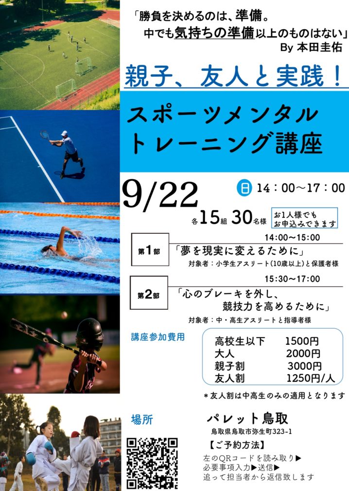 9月22日(日)に鳥取市で開催されて大好評だったアスリート向けの講座がさらにパワーアップ!