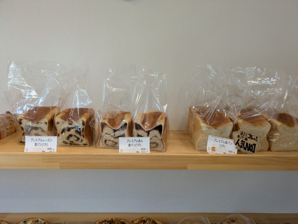 食パンはプレミアム、レーズン、あんなどがあります。