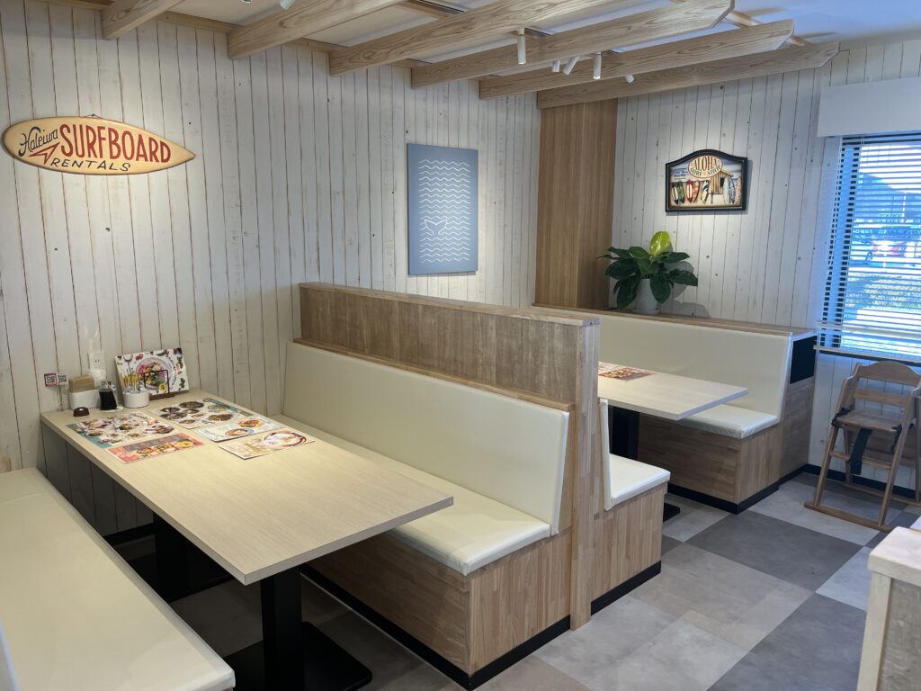 ハワイのカフェを思わせるインテリアと、自然素材を活かした落ち着いたデザインが絶妙。