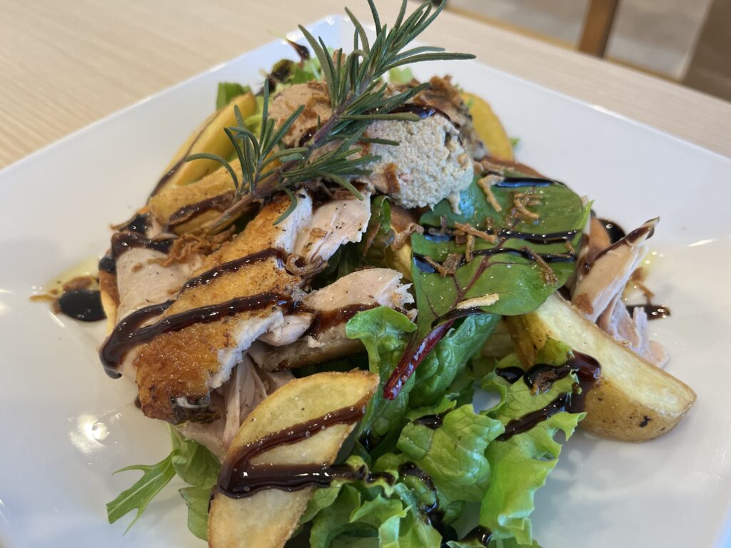 バルサミコ酢がアクセントのソースとライ麦パンケーキと合わせると、香ばしさとコクが重なって、一気に「ごちそう感」が増します。