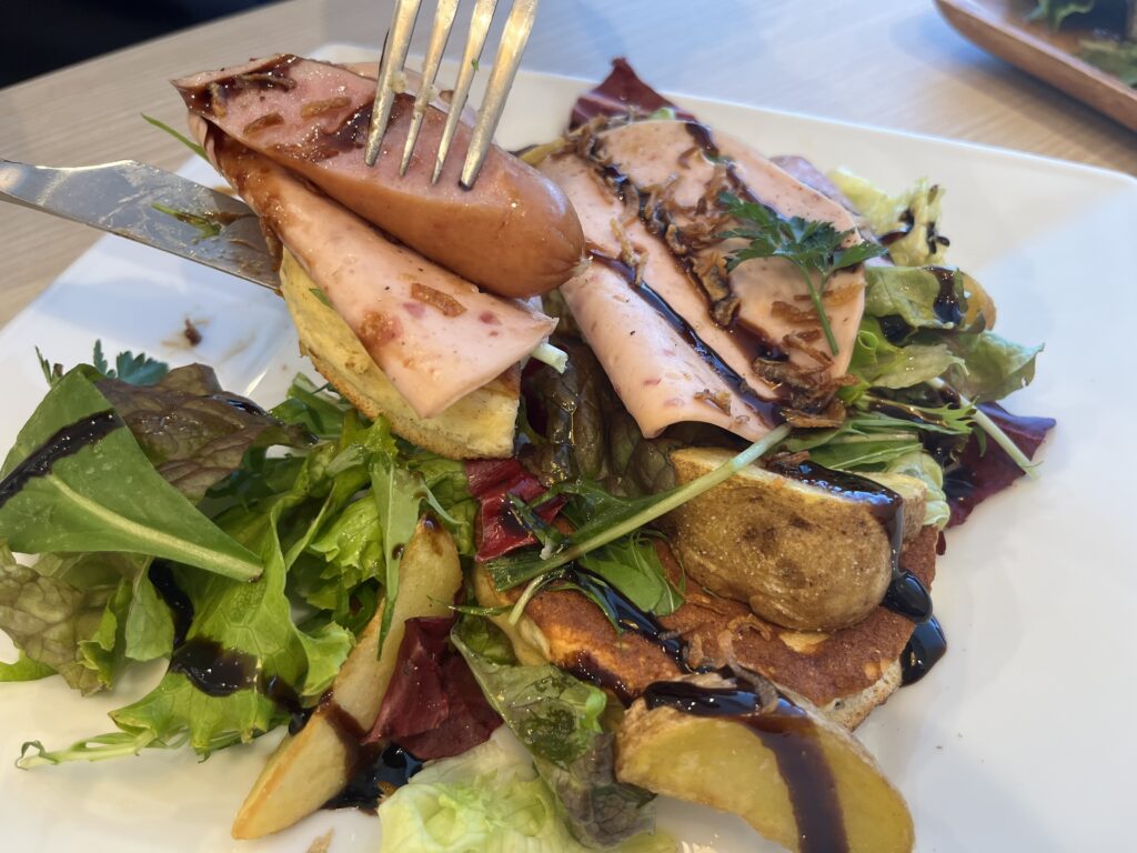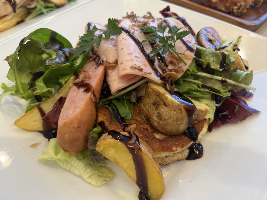 存在感はあるけど、主張しすぎないパンケーキは大山ハムやソーセージ、野菜など素材の風味を引き立てます。