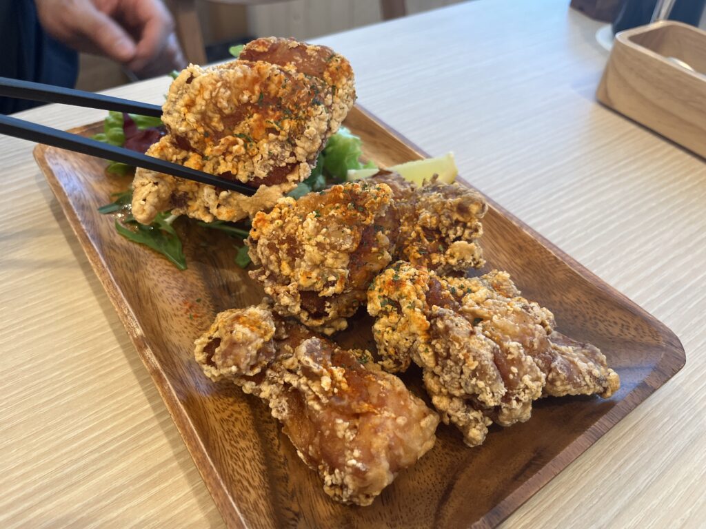 拳サイズのチキンがドンと乗ったプレートは、見た目のインパクトも満点。