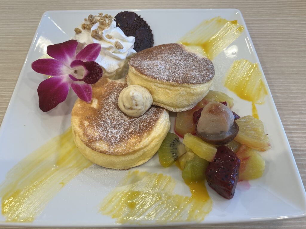 パンケーキが主役・・・かと思いきや、ガーリックシュリンプ、フライドチキン、パスタ、カレー、ステーキ、さらにアサイーボールやピタヤボールまで揃う、想像以上に「ガッツリ本気」なカフェ&レストランでした!