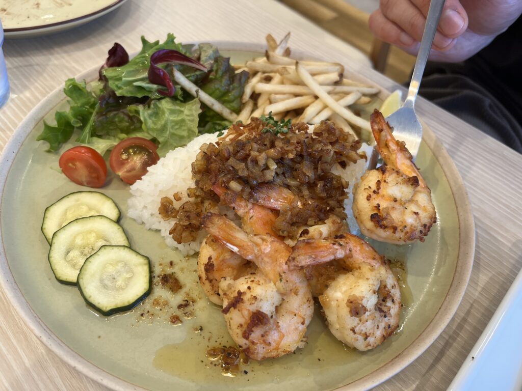 ここはパンケーキメインのお店だったよね・・・!?と思ってしまうほど、ガーリックシュリンプの完成度が高すぎる。