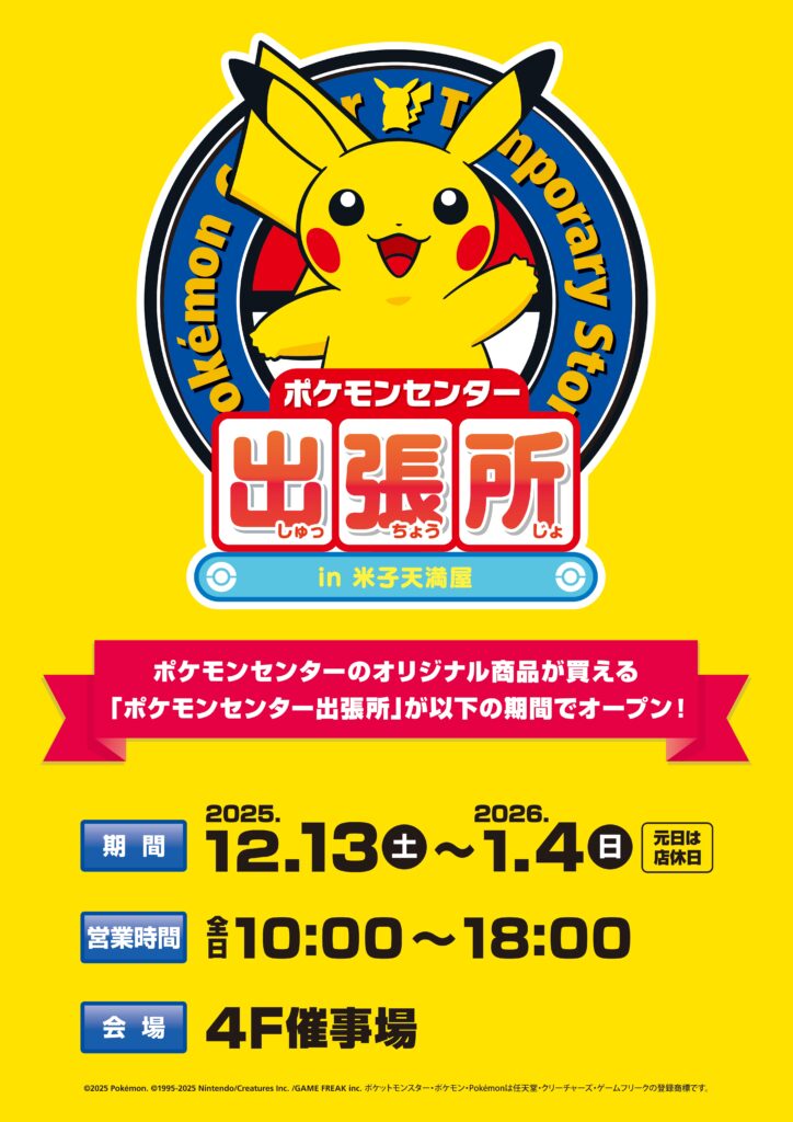 子どもから大人まで大人気のポケモンの世界を体感できるイベント「ポケモンセンター出張所 in 米子天満屋」が、2025年12月13日(土)〜2026年1月4日(日)までの期間で開催されます!