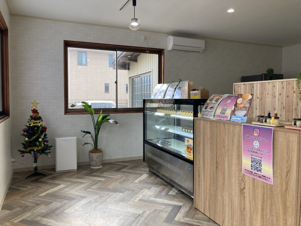 ショーケース越しに並ぶプリンがよく見える造りです。