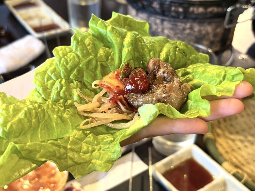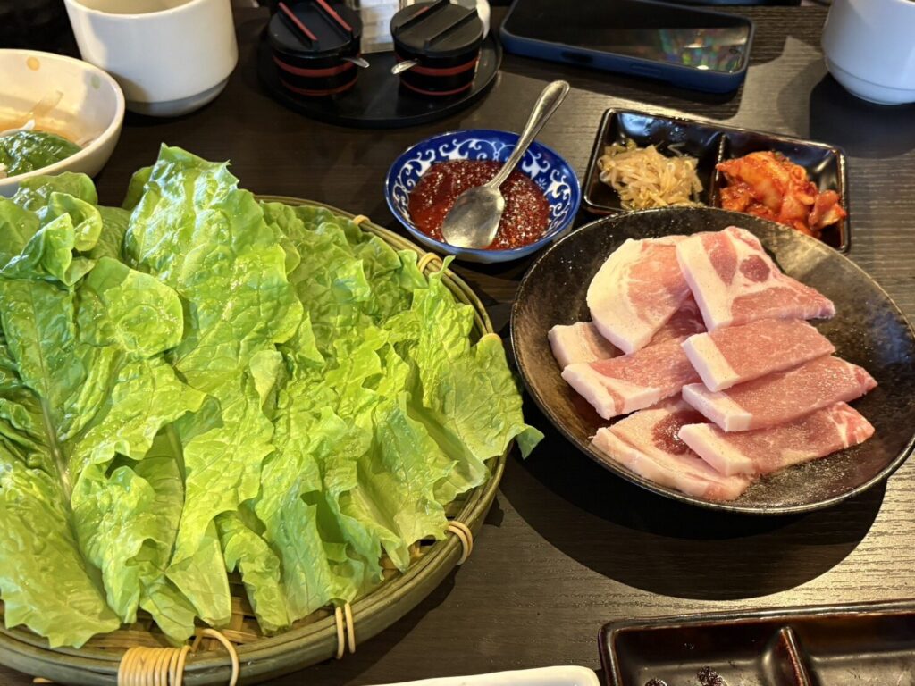 キムチとソースはあまり辛くなく、辛いものが苦手でも食べることができました。苦手な方は自分で量を調節することができます。