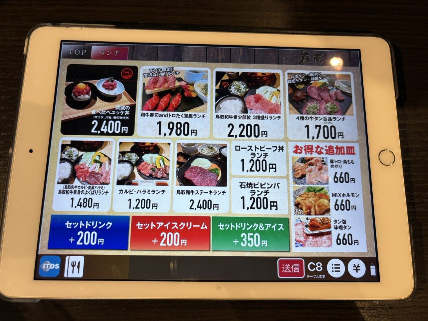 各席にあるタブレットで商品を注文します。