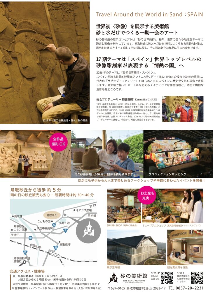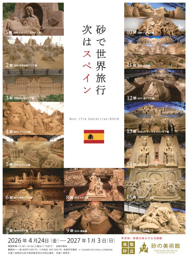 鳥取市の砂の美術館にて、第17期展示「砂で世界旅行・スペイン」がスタートします!