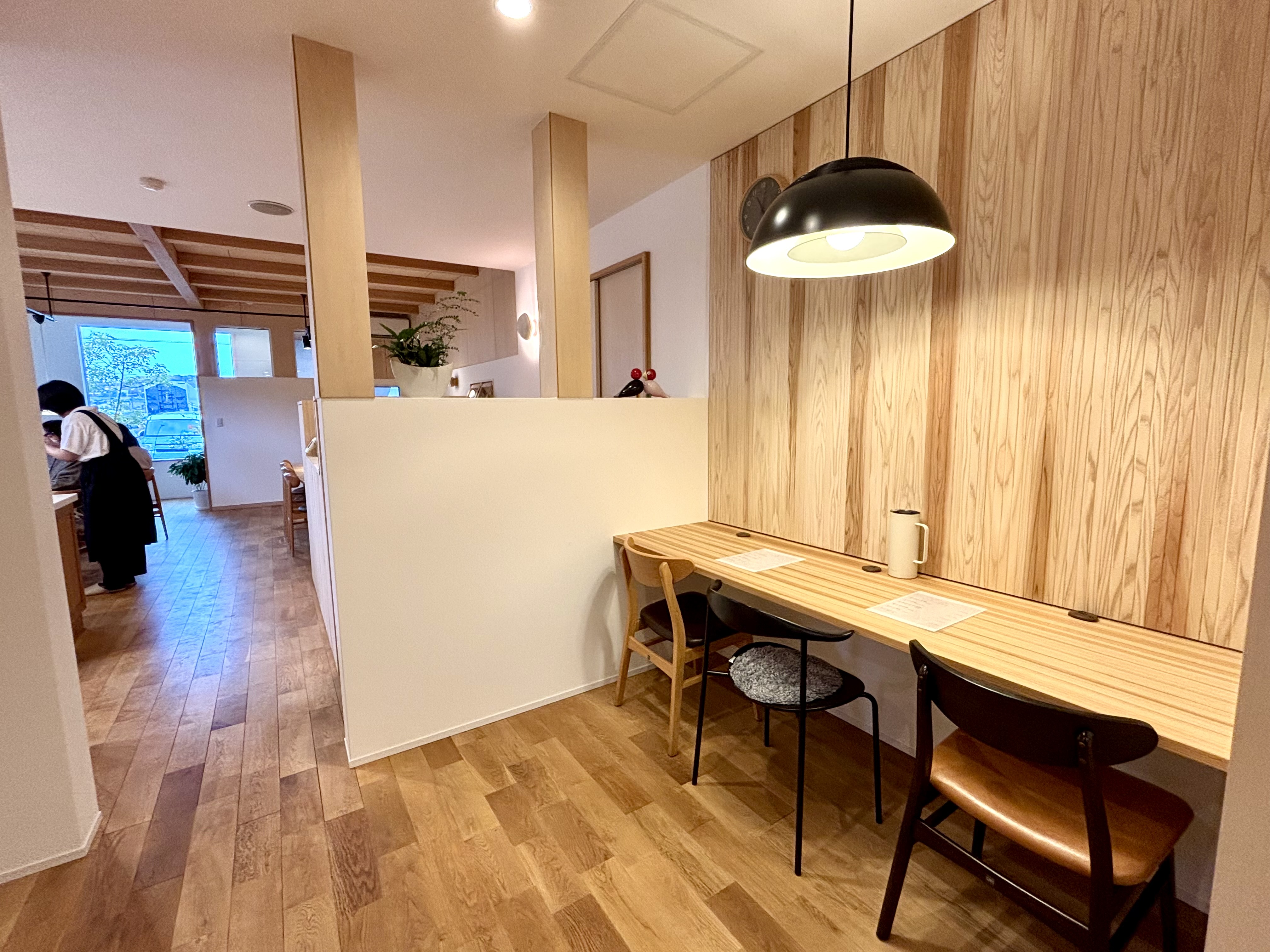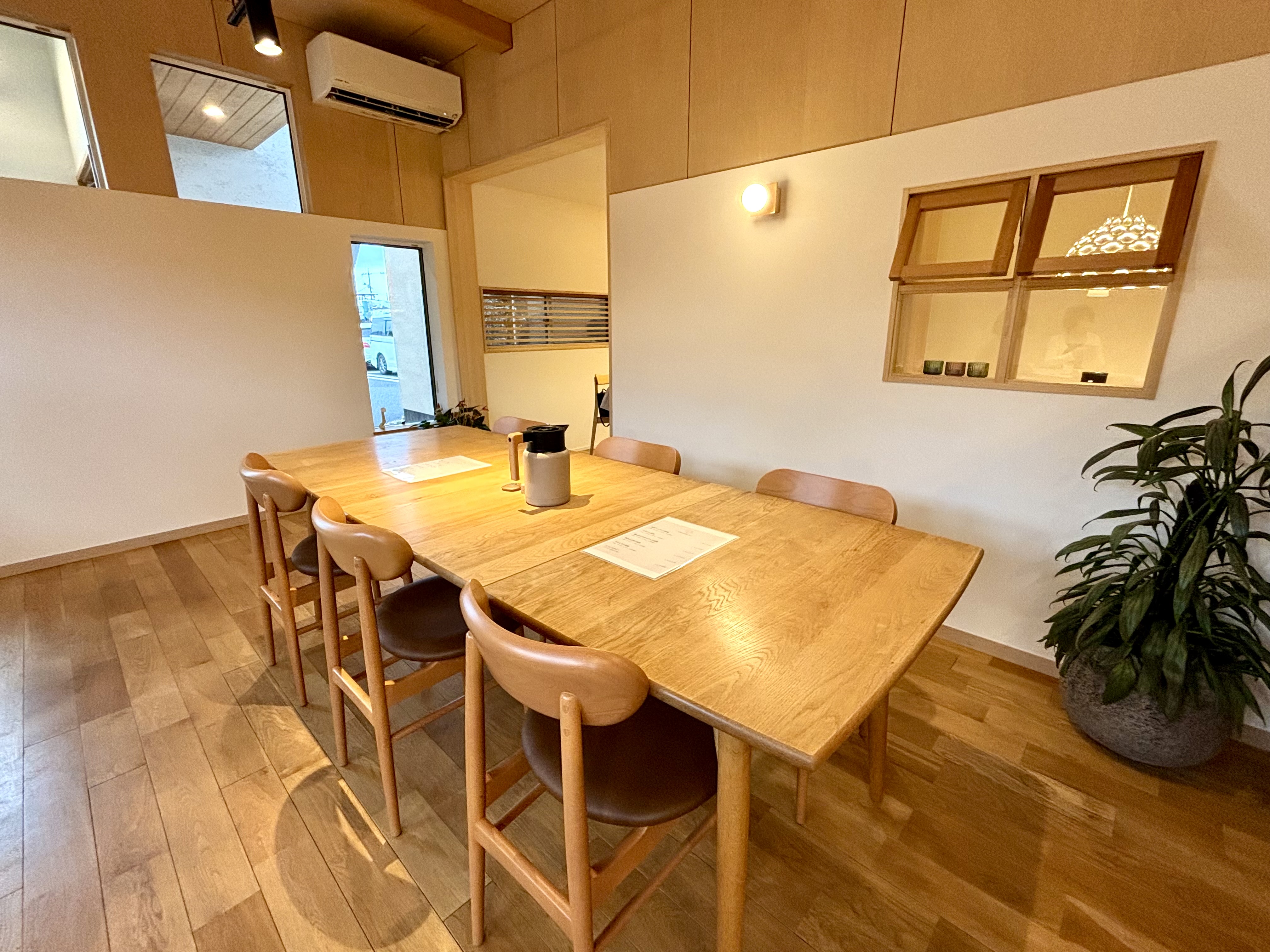 木を基調とした明るい店内には、広めのテーブル席とカウンター席があります。