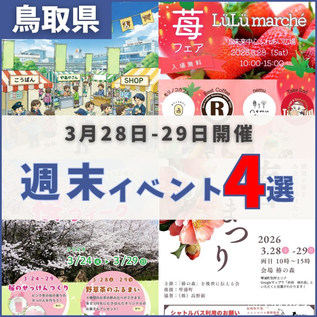 2026年3月28日(土)〜29日(日)に開催される「鳥取週末イベントスケジュール」をまとめました。